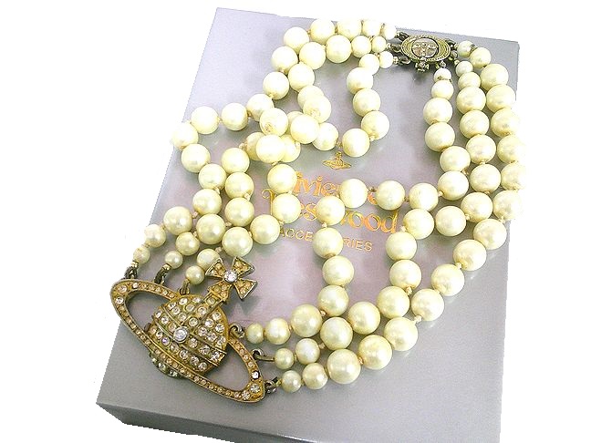 Vivienne Westwood バスレリーフ3連パールペンダント